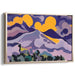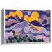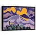 The composition harmoniously blends deep purples with vibrant yellows, creating a captivating visual contrast that instantly grabs attention. Transitioning from darker tones in the foreground, including shades of black and green, the piece evolves into soft purples, pinks, and finally, a luminous yellow sky. These color choices, combined with fluid shapes and color blocking techniques, imbue the artwork with a dreamlike quality that exudes calm and tranquility.