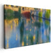 The reflection in the calm waters imbues the artwork with an ethereal quality, where colors softly blend and blur in an almost poetic, impressionistic fashion. Dominated by soothing blues and greens, the palette evokes a profound sense of peace and tranquility, complemented by warm yellows and subtle reds that add a gentle touch of contrast and warmth to the overall cool tones.