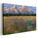 Introducing 'Peak Meadow Serenity: Serene Mountain Landscape with Vibrant Meadow,' a mesmerizing canvas art that transports viewers to a world of majestic mountains and vibrant meadows, exuding a sense of grandeur and tranquility. This captivating artwork centers around a majestic mountain range, its peaks adorned with snow, reaching towards a clear blue sky, creating a scene of awe-inspiring beauty and peace.