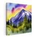 Introducing 'Peak's Echo Dream,' a mesmerizing watercolor mountain landscape canvas art that transports viewers to a serene and awe-inspiring natural setting. This captivating artwork captures a majestic snow-capped mountain amidst a dynamic sky painted with vibrant colors and fluid brushstrokes, evoking a sense of peace and tranquility.