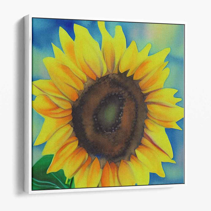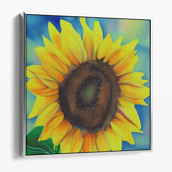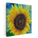 Introducing "Petal Sunbeam Waltz," a mesmerizing canvas art print that captures the essence of a vibrant yellow sunflower in full bloom, radiating warmth and joy like a miniature sun. This close-up masterpiece showcases the intricate details of the sunflower, with its petals unfurling like delicate brushstrokes of nature against a serene blue backdrop.