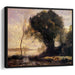In "Pond with Dog," Corot's signature style shines through. His delicate brushstrokes and soft, hazy atmosphere create a sense of dreamlike stillness. The play of light and shadow, with the warm glow of the setting sun casting long shadows, adds depth and dimension to the scene.