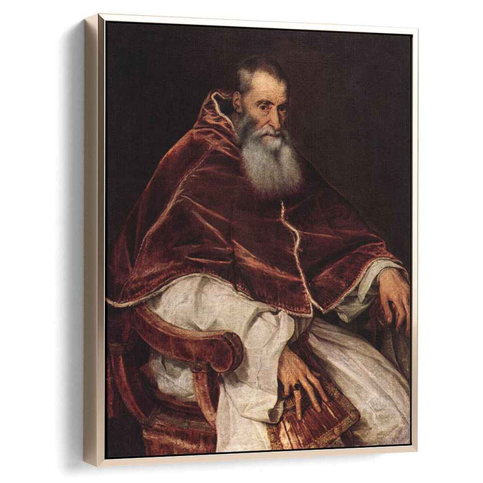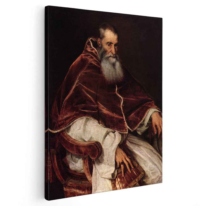 Unveil the grandeur and complexity of Titian's iconic portrait, "Pope Paul III" (1543). This masterpiece, now meticulously reproduced on high-quality canvas, captures the essence of papal authority and the artistry of the Venetian Renaissance.