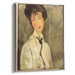 Modigliani's portrait exudes an air of elegance and sophistication. The woman's elongated neck and graceful posture suggest a sense of refinement and poise. Yet, there's also a hint of melancholy in her eyes, as if she harbors a secret sorrow. This nuanced portrayal captures the complex emotions of the human experience.