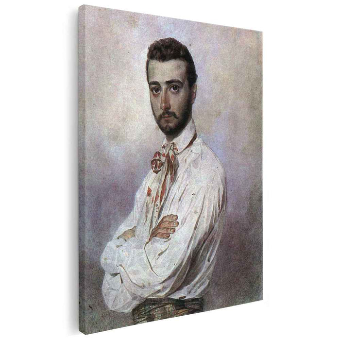 Unveil the captivating charm within Karl Bryullov's "Portrait of Vincenzo Tittoni," painted in 1852. This exquisite artwork, now meticulously reproduced on high-quality canvas, invites you to delve into the depths of Bryullov's talent and the intriguing persona of his subject.