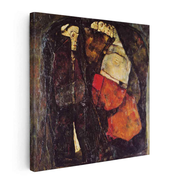 Unveil the depths of Egon Schiele's iconic painting, "Pregnant Woman and Death" (1911), now masterfully reproduced on high-quality canvas. This emotionally charged masterpiece invites you to confront the profound themes of life, mortality, and the transformative power of art.