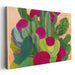 The artist's palette is a symphony of rich greens, accentuated by the bold presence of magenta flowers that add bursts of life to the composition. Set against a soft, warm peach background, the vivid greenery pops with contrast, infusing the artwork with depth and warmth, creating a visual feast for the eyes.