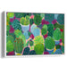 Immerse yourself in the lush vibrancy of 'Prickly Proportions: A Symphony of Cacti,' a mesmerizing canvas art print that transports the enchanting allure of a cactus garden directly into your living space. This captivating artwork showcases a breathtaking array of cacti, meticulously depicted with a rich palette of greens ranging from jade to emerald, harmoniously punctuated by bursts of pink and red flowers.