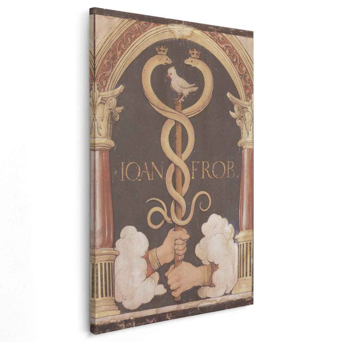 This museum-quality canvas print captures the intricate details and vibrant colors of Holbein's original. "Printer's Device of Johannes Froben" becomes a captivating focal point in any room, inviting you to reflect on the transformative power of knowledge and the enduring legacy of the Renaissance.