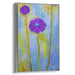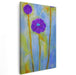 Introducing 'Radiant Amethyst Blossom Burst: Vivid Purple Floral Canvas Art,' a mesmerizing piece that captures the essence of natural beauty and artistic finesse. This striking artwork features three elongated, stylized flowers, with a dominant rich purple bloom at the center, accompanied by a smaller yet equally vibrant purple flower at the top. Set against a dreamlike backdrop of soothing blue and yellow tones, the scene exudes a tranquil yet energizing aura.