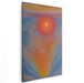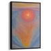 Introducing "Radiant Echoes: Abstract Sunrise-Sunset Canvas Art Print," a mesmerizing piece that captivates the viewer with its interplay of colors and light, creating a serene yet powerful atmosphere. The artwork's focal point is a radiant, glowing orb resembling the sun, emanating warm hues of orange and red, set against a sky transitioning from warm tones to cooler blues and purples, reminiscent of a breathtaking sunset or sunrise.
