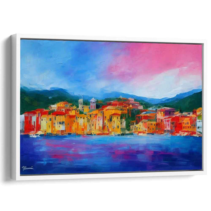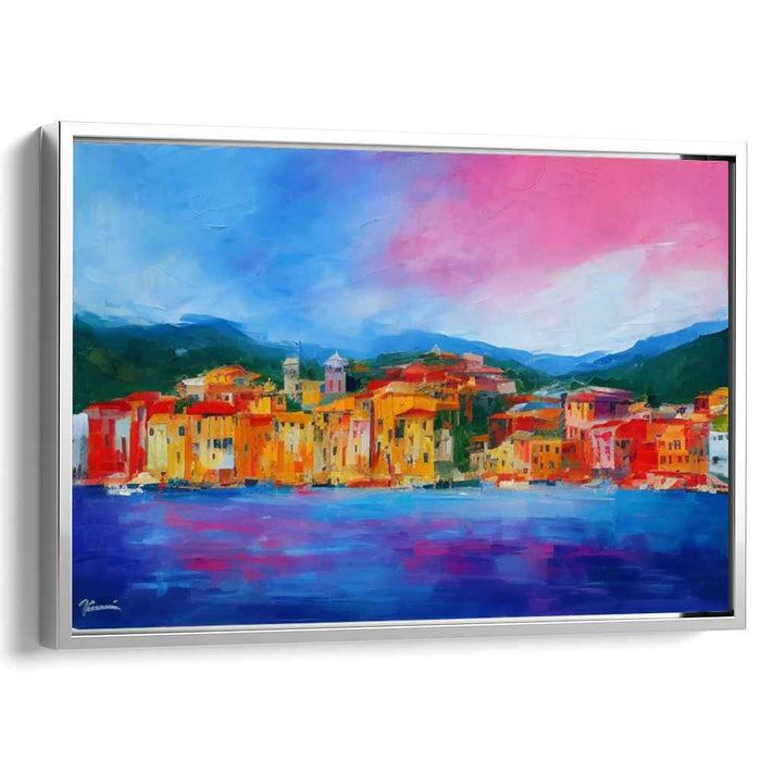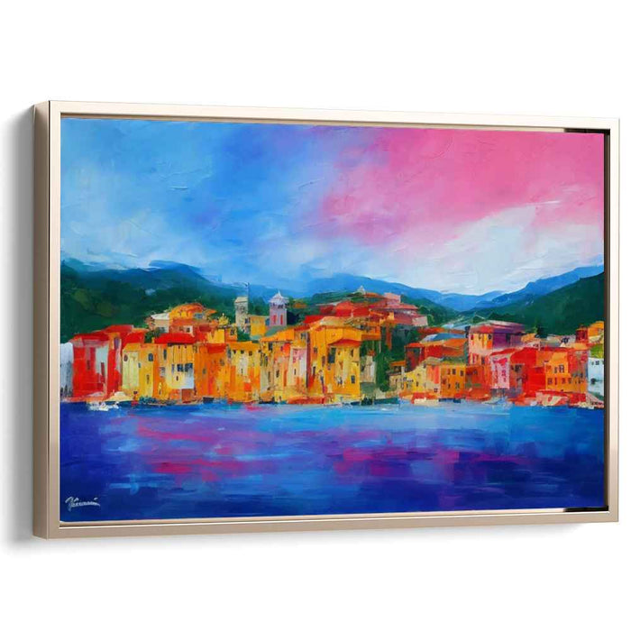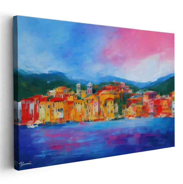 Radiant Riviera: Colorful Coastal Townscape Canvas Art
