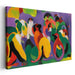 The canvas comes alive with a rich palette of colors, from bright yellows and deep reds to lush greens and bold purples, all harmoniously blending to create a feast for the eyes. The artist's choice of warm and cool hues creates a captivating contrast that adds depth and movement to the piece, drawing the viewer into a world of playful exuberance.