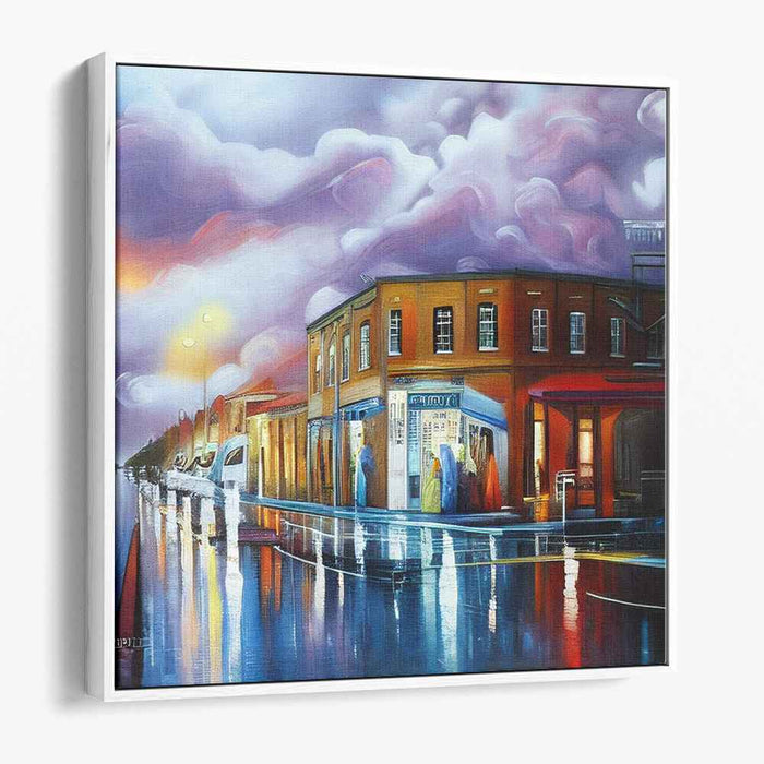 Transform your living space with 'Rainy Evening Serenity: Urban Street Reflections' and bring the enchanting beauty of a rainy city evening into your home. This canvas art print not only enhances your decor but also serves as a daily reminder of the peaceful allure found in the midst of urban landscapes.