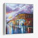 This canvas art print is a harmonious blend of Impressionism and Realism, echoing the emotional depth and technical precision of artists like Edward Hopper and Leonid Afremov. The meticulous attention to detail, especially in capturing the play of light and shadow, showcases the artist's skill and dedication to creating a captivating urban landscape.
