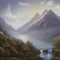 Decorate your walls with this high quality Realism Misty Mountain art print on canvas. Whether you hang it in your living room, bedroom or office, this artwork is sure to add a touch of beauty and color to your room.
