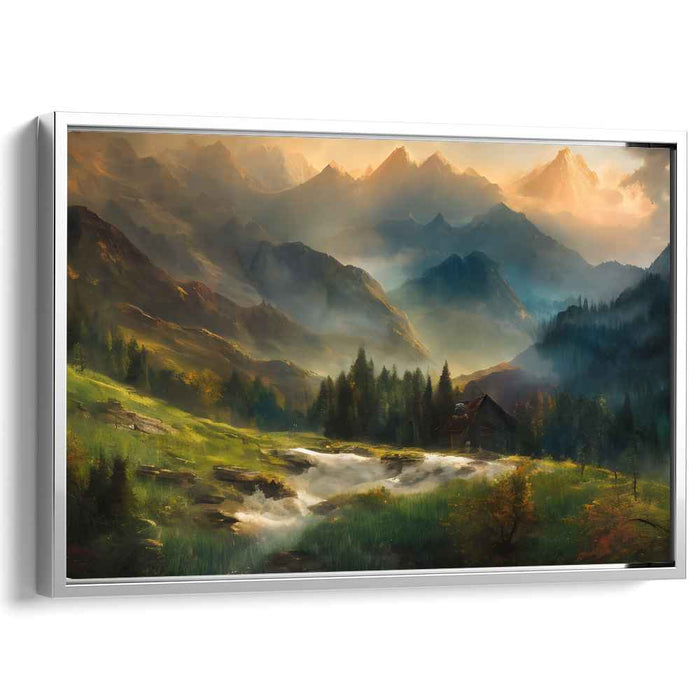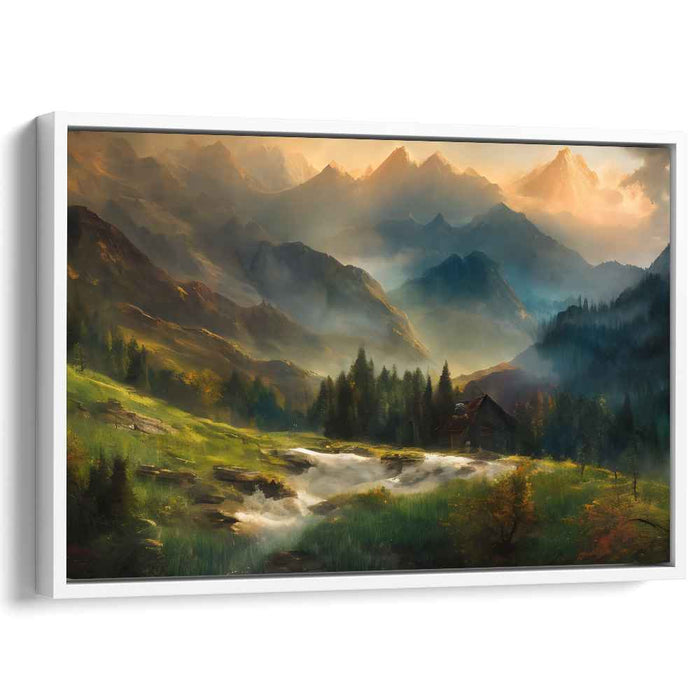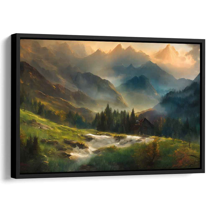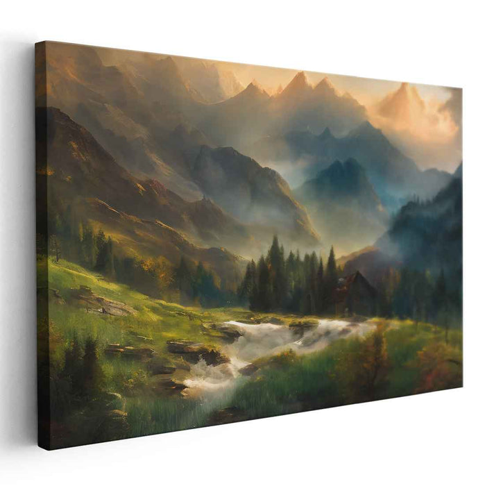 Decorate your walls with this high quality Realism Misty Mountain art print on canvas. Whether you hang it in your living room, bedroom or office, this artwork is sure to add a touch of beauty and color to your room.