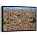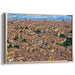 The painting's aerial perspective unveils a dense and intricate city layout, inviting viewers to wander through the labyrinthine streets and marvel at the terracotta roofs that dominate the scene. The warm earth tones of the rooftops harmonize with the sandy beige and ochre walls of the buildings, creating a captivating contrast against the patches of greenery, likely cypress trees, interspersed among the urban structures.