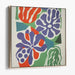 Reflecting the mid-20th-century modernist movement, 'Retro Garden Geometry' channels the spirit of artists like Henri Matisse, known for his bold color contrasts and cut-out shapes. The piece exudes a sense of dynamism and vitality, drawing viewers into a world of exuberant abstraction.