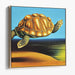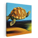 The sea turtle takes center stage with its rich golden brown shell, harmonizing strikingly against the backdrop of azure blue waters and sandy beige shores. This vibrant yet soothing color palette infuses the piece with a sense of vitality and tranquility, inviting viewers to immerse themselves in the beauty of the marine world.