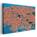 Introducing 'Rooflines Overlooking Ocean Town,' a captivating canvas art that elevates viewers to a bird's eye view of a coastal town, capturing its historic allure and vibrant beauty. This breathtaking aerial perspective showcases a dense cluster of traditional stone buildings crowned with striking orange terracotta roofs, harmoniously blending with the deep blue sea gently caressing the town's edges.