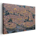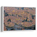 Introducing 'Rooftop Chronicles: Aerial View of Historic European Cityscape,' a mesmerizing canvas art that offers a bird's eye view of a charming European city, bathed in warm, earthy tones and intricate architectural splendor. This captivating piece showcases a dense cluster of terracotta rooftops adorning the canvas with a rhythmic and almost hypnotic pattern, interspersed with clusters of dark green cypress trees that provide a striking contrast against the predominantly yellow and orange buildings.