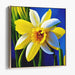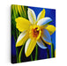 Introducing 'Royal Blooms: Daffodil Delight Against Royal Blue,' a captivating canvas art print that celebrates the exquisite beauty of a blooming daffodil in all its splendor. This artwork is a mesmerizing portrayal of a single daffodil flower, with its petals painted in a luminous yellow that stands out boldly against a rich royal blue backdrop.