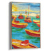 Introducing "Sail Away Dreamscape Glow," a captivating canvas art piece that transports you to a bustling harbor at sunset, where a myriad of vibrant boats dance on the tranquil turquoise sea. This lively scene is a symphony of colors, with bold reds and yellows adorning the boats, creating a striking contrast against the serene blue waters.