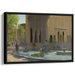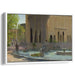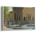 Introducing 'Sandstone Symmetry,' a captivating canvas art piece that transports viewers to a serene oasis of historical elegance, reminiscent of ancient Middle Eastern palaces. This exquisite artwork portrays a tranquil courtyard adorned with a peaceful fountain, enveloped by lush greenery and intricate stone pathways that guide the gaze towards majestic, ornate building facades in the distance.