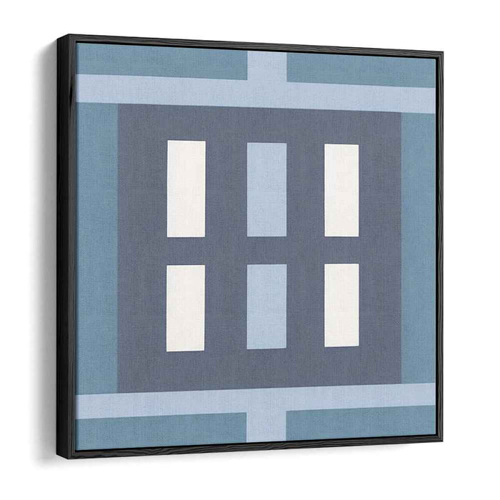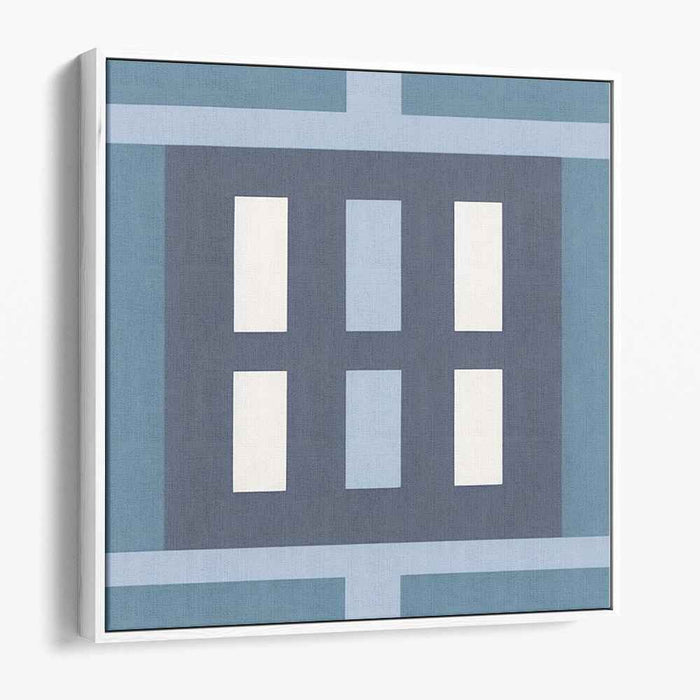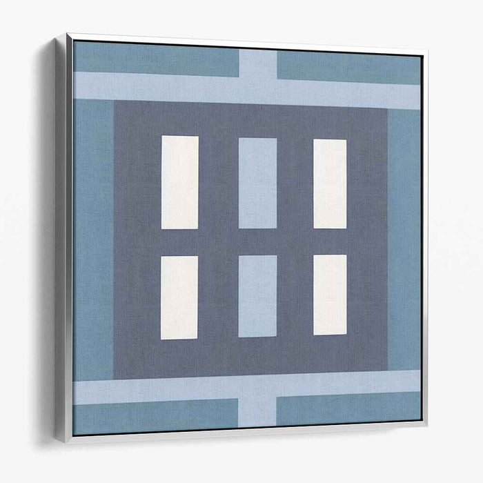 Introducing "Sapphire Geometry," a captivating canvas art print that exudes a sense of serenity and order through its minimalist and geometric design. This artwork beckons viewers with its balanced composition and subtle color palette, offering a tranquil visual experience that is both calming and intriguing.