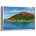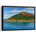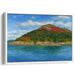 Introducing 'Sapphire Mist Over Horizons,' a mesmerizing landscape canvas art piece that transports viewers to a serene coastal setting, showcasing a grand mountain adorned with the rich hues of autumn foliage. This captivating artwork captures the essence of a tranquil coastline, where the majestic mountain stands as a beacon of natural beauty.