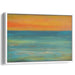 Introducing "Seafoam Sonata," an exquisite seascape canvas art print that captures the serene beauty of a sunset over a tranquil sea, offering a mesmerizing visual journey through a harmonious blend of colors. The artwork features a vibrant orange hue dominating the upper canvas, symbolizing the setting sun, gracefully merging with shades of blues and greens that depict the peaceful sea below, creating a captivating spectacle for the beholder.