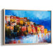 Step into the enchanting world of 'Seaside Melancholy: Colorful Coastal Village Reflection,' a mesmerizing canvas art piece that transports you to a serene Mediterranean village brimming with vibrant colors and tranquil reflections. This artwork captures the essence of a picturesque coastal village, where the sun-kissed buildings cast a beautiful reflection on the calm waters, creating a harmonious and peaceful scene.
