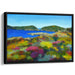 Immerse yourself in the vibrant beauty of 'Serenade of Verdant Dreams: A Lush Landscape Canvas Art'. This captivating artwork features a lush, colorful landscape overlooking a serene coastal scene, masterfully capturing the essence of nature's tranquility and the vividness of wild flora. The foreground is a riot of colors with patches of pink, yellow, red, and green, representing a meadow blooming with wildflowers. These bright, joyful colors gradually transition to the calming blues and greens of the midground, where tranquil waters nestle between rolling, forest-covered hills. The composition is skillfully balanced, drawing the viewer's eye from the colorful foreground across the cool waters to the distant hills under a broad, open sky. The use of broad, impressionistic brushstrokes adds a dynamic texture to the scene, enhancing the visual impact and giving it a lively, organic feel.