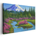 Introducing "Serene Alpine Spring," an enchanting landscape canvas art that transports viewers to a tranquil natural oasis, where a majestic snow-capped mountain presides over a lush, blooming forest. This captivating artwork captures the essence of a vibrant springtime, with the landscape adorned in shades of green, pink, and magenta, creating a picturesque scene of serene beauty.