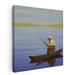 Serene Angler: Realistic Fisherman on Tranquil Lake Canvas Art Print