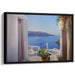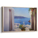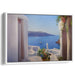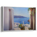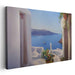 Introducing the captivating "Serene Mediterranean Escape," a mesmerizing canvas art print that transports viewers to the idyllic charm of a Mediterranean coastal village, reminiscent of the breathtaking landscapes of Santorini, Greece. This exquisite artwork unfolds a panoramic vista of the deep blue sea embraced by the iconic white architecture typical of the region.