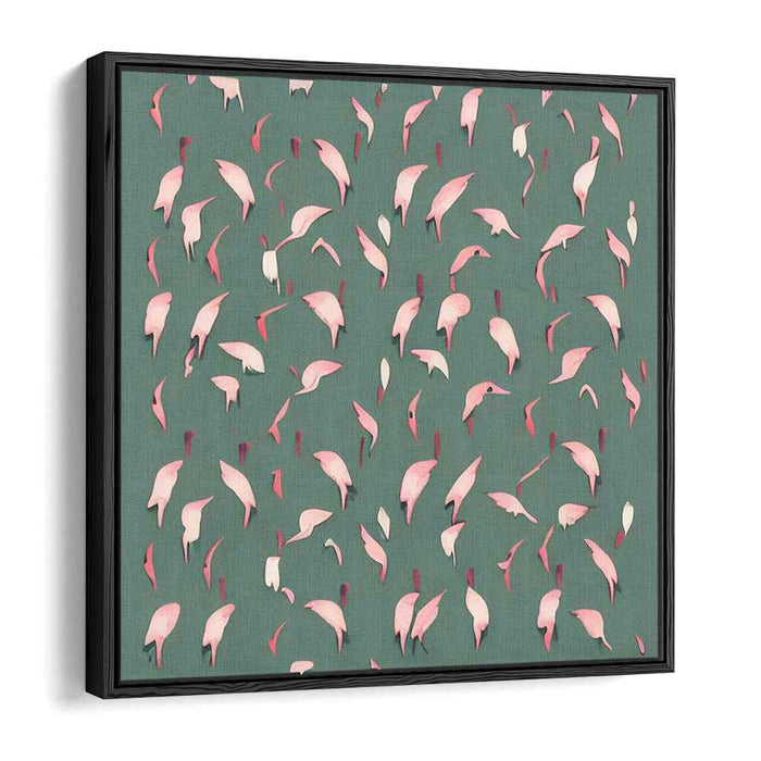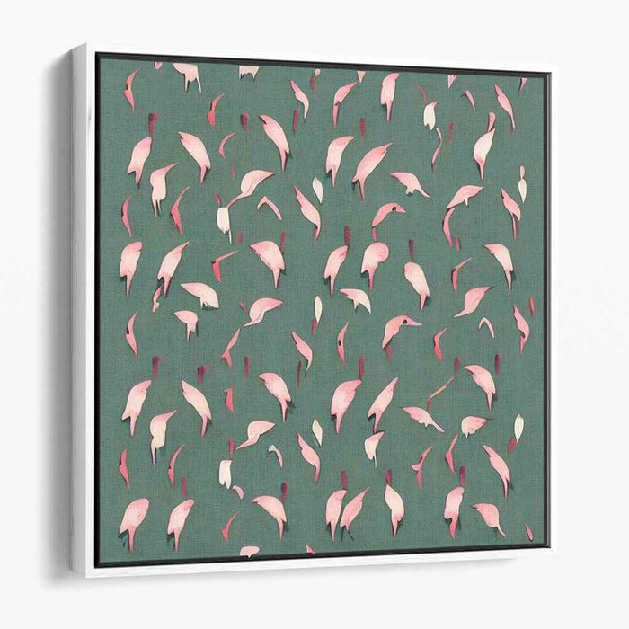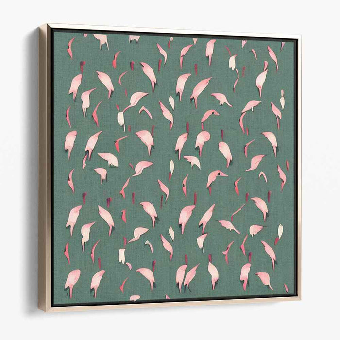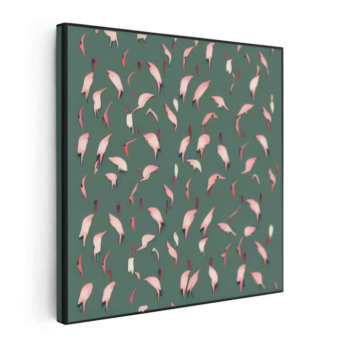 Introducing 'Serene Petal Dance,' a mesmerizing canvas art print that captures the graceful dance of delicate pink petals against a serene green backdrop. This contemporary artwork exudes a sense of tranquility and movement, as if the petals are gently floating in a peaceful breeze, invoking a feeling of calm contemplation.