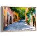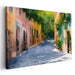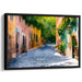 Serene Sunlit Street: European Village Watercolor Canvas Art Print