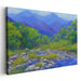 Introducing 'Serenity by the Mountain Stream,' an enchanting landscape canvas art print that transports viewers to a peaceful mountain stream nestled amidst lush greenery and towering peaks. This captivating artwork captures the serene beauty of nature, showcasing a flowing river in the foreground reflecting the vibrant colors of the surrounding flora.