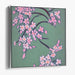 Introducing "Silent Bloom Petals," a mesmerizing canvas art print that encapsulates the ethereal beauty of cherry blossoms in full bloom. This exquisite artwork transports viewers to a serene setting where delicate branches adorned with clusters of soft pink flowers gracefully extend across a calming green backdrop, capturing the essence of nature's fleeting beauty.