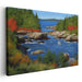 Introducing 'Silent Echoes and Vivid Greens,' a mesmerizing landscape canvas art that transports viewers to a serene coastline, enveloped in the breathtaking beauty of nature's tranquility. This captivating artwork showcases a vivid foreground bursting with the fiery reds and warm oranges of autumn foliage, harmoniously juxtaposed against the deep blues of a gently meandering river.
