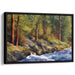 Immerse yourself in the tranquil beauty of nature with 'Silent Forest Tranquility: Tranquil River and Forest Canvas Art.' This mesmerizing landscape painting captures a serene riverside setting embraced by a dense, verdant forest. The artwork portrays a harmonious blend of majestic pine trees and weathered, moss-laden rocks adorning the riverbank, while the gentle meander of the river instills a calming atmosphere.