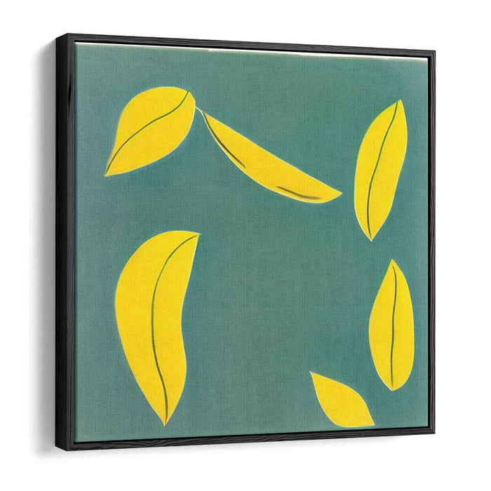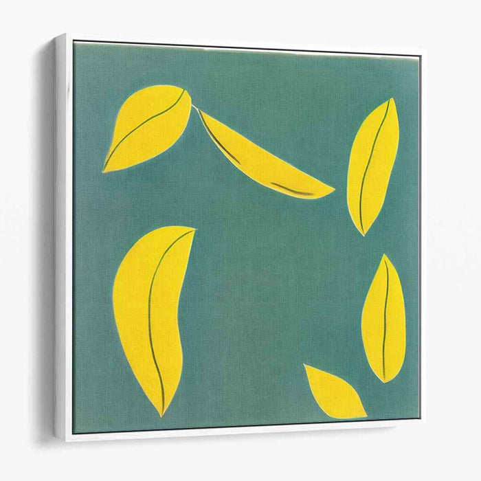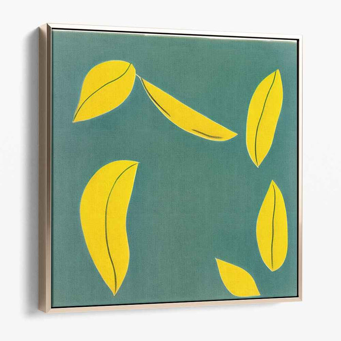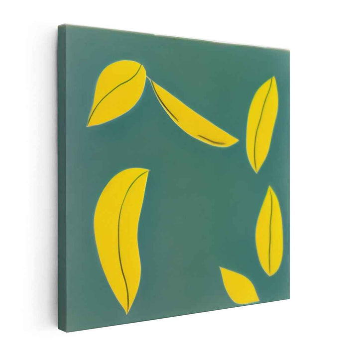 Simplicity in Teal and Gold: Minimalist Yellow Leaves on Teal Canvas Art Print