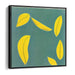 Introducing 'Simplicity in Teal and Gold,' a mesmerizing canvas art print that embodies a minimalist and modern aesthetic, showcasing abstract yellow leaf-like shapes against a tranquil teal backdrop. This captivating artwork exudes a sense of tranquility and balance, with its clean and striking composition.