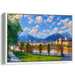 Emanating tranquility and nostalgia, this canvas art evokes a sense of peaceful reflection, making it a perfect addition to a living room or study. The reflection of the town in the serene river adds a symmetrical charm to the piece, enhancing its allure and inviting viewers to immerse themselves in its beauty.