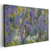 The primary color palette of this artwork revolves around a luxurious purple hue, harmoniously interwoven with secondary tones of green, yellow, and delicate hints of orange. These colors blend seamlessly, capturing the essence of a flourishing garden in the spring, radiating natural beauty and tranquility.