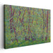 The artist's pointillist technique, employing myriad small dots and strokes of paint, creates a shimmering, almost ethereal quality to the piece when viewed from a distance. Dominated by a vivid green hue symbolizing growth and renewal, the canvas is further enriched by deep reds, purples, and yellows, adding depth and contrast to the composition. The dynamic interplay of colors between the green foliage and the reds and purples of the tree trunks and branches creates a visually captivating experience that traverses the entire canvas.