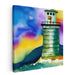 Spectral Beacon: Vibrant Watercolor Lighthouse Canvas Art Print