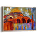 Introducing 'Spectral Serenity Dance,' a mesmerizing canvas art print that transports viewers into a vibrant, mosaic-like world of historical grandeur. This captivating artwork showcases a stunning artistic interpretation of a historical dome and architectural structure, presented in a rich watercolor style that blends tradition with modernity.